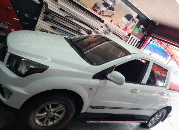 Estribos de aluminio con bisel de acero inoxidable negros para Ssanyong A200