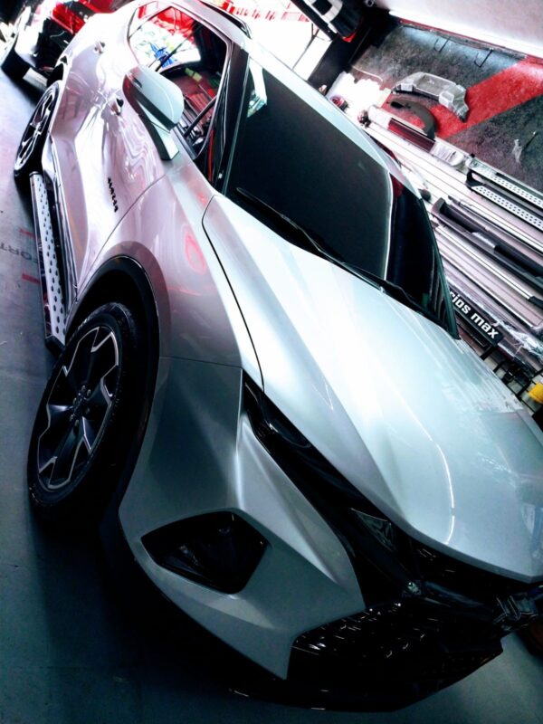 Plataforma o plancha alargada que se extiende entre los guardabarros delantero y trasero, que sobresalen de la carrocería y se incorporan directamente al chasis, con el fin de facilitar el apoyo de los pies para el acceso o salida de la camioneta.