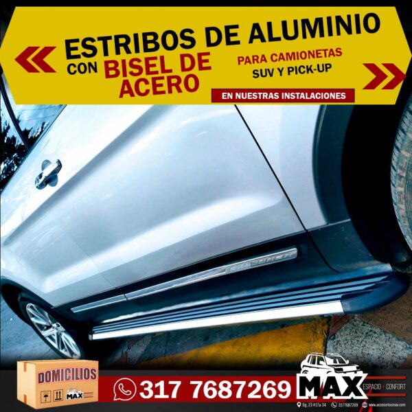 los estribos son los accesorios que se encuentran en la parte inferior de los vehículos ( en uno ambos lados ). Por lo general al pie de la puerta de una camioneta, estos artículos protegen tu camioneta de diversas formas de desechos de la carretera.