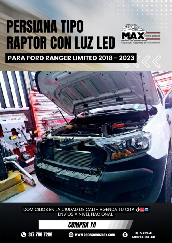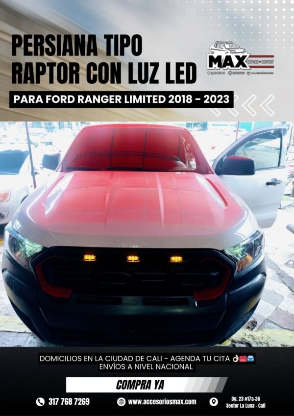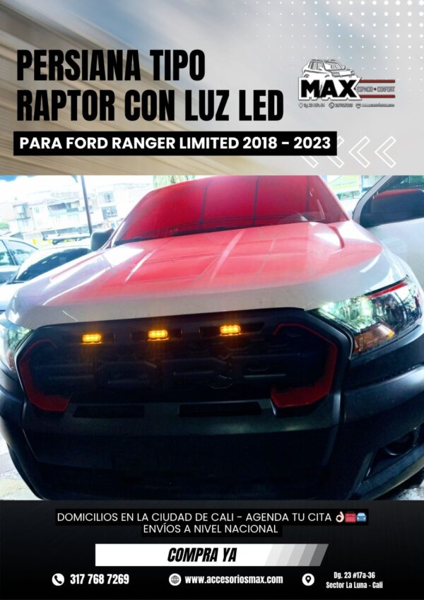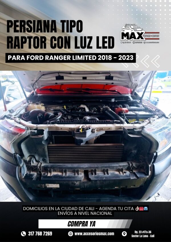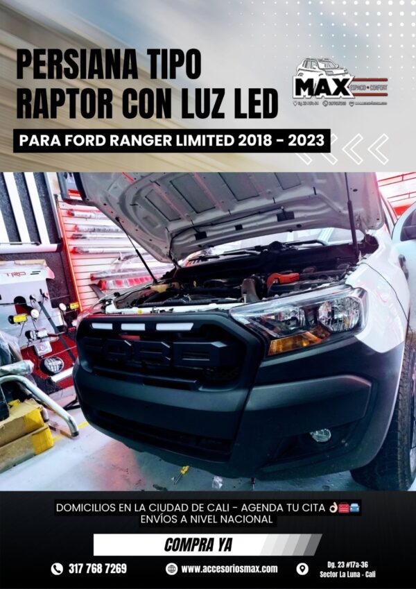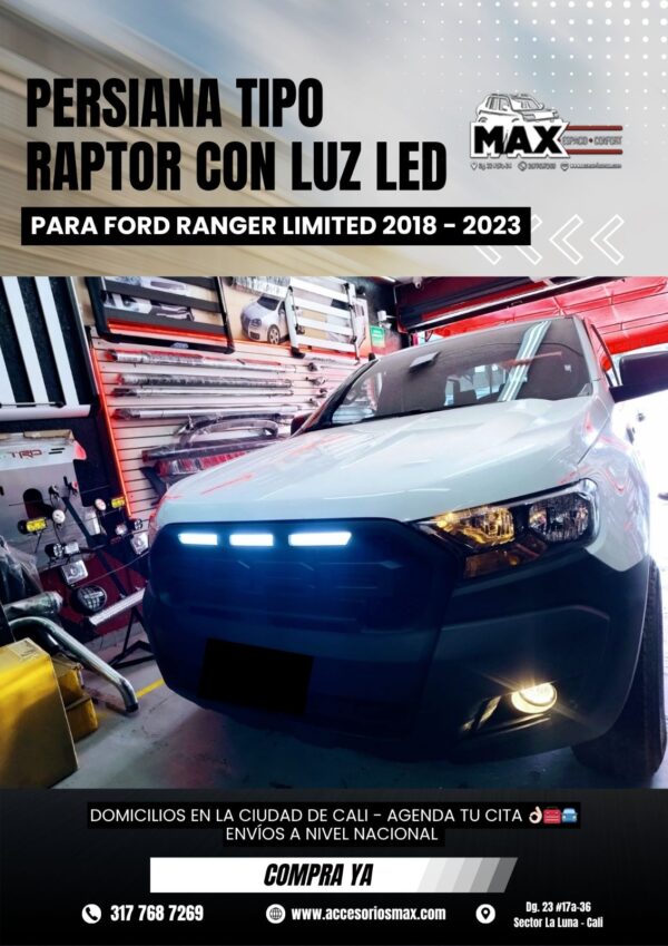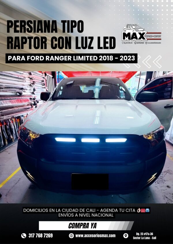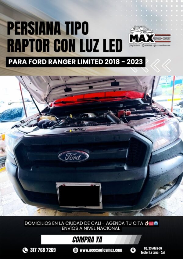 PERSIANA TIPO RAPTOR CON LUZ LED PARA FORD RANGER LIMITED 2018-2023