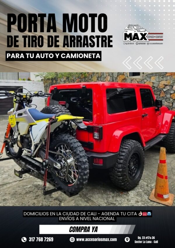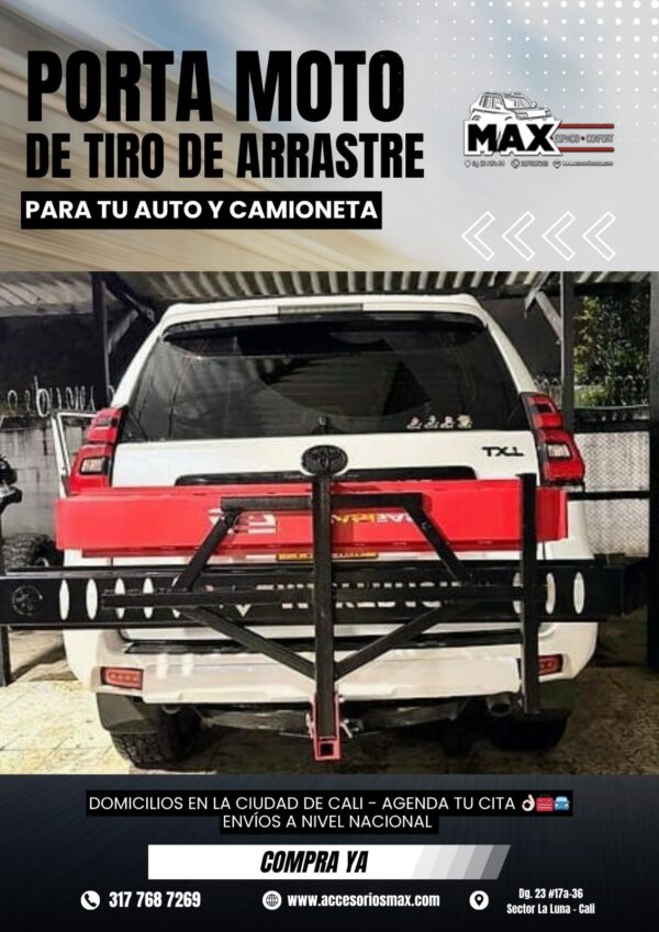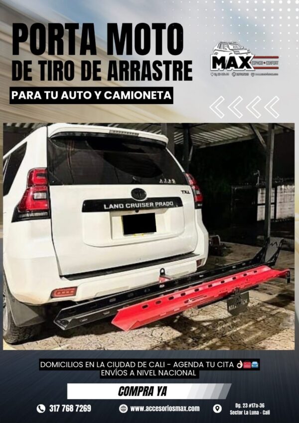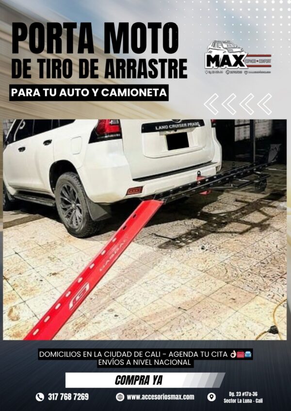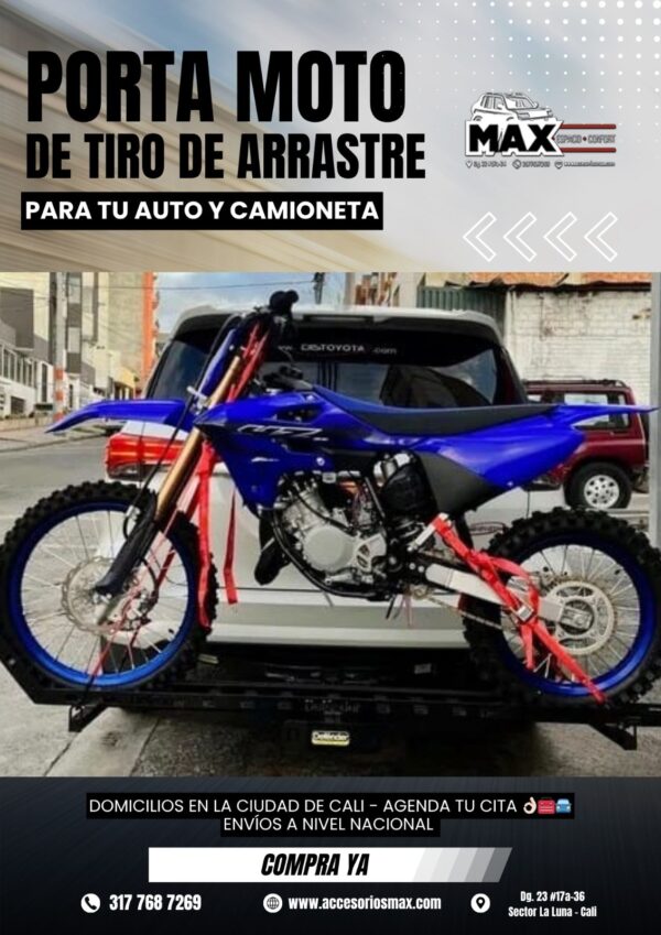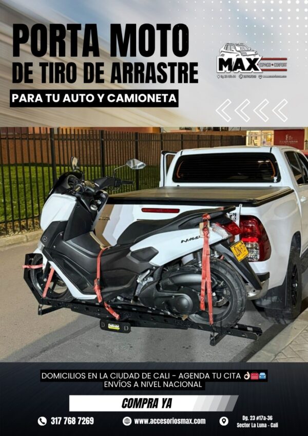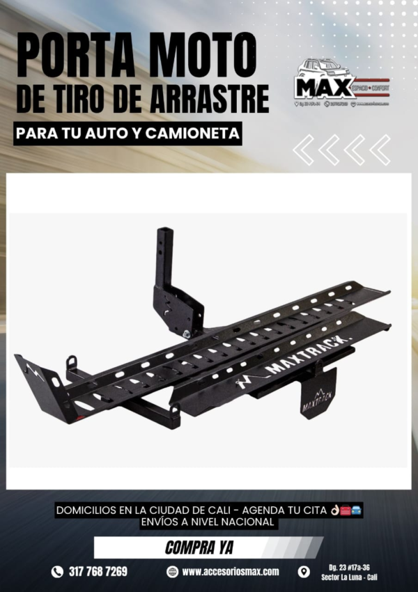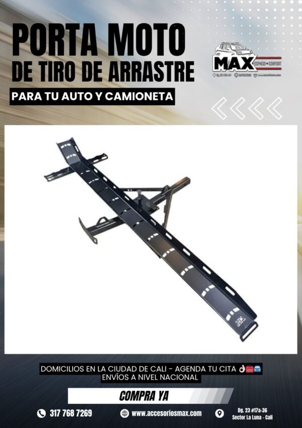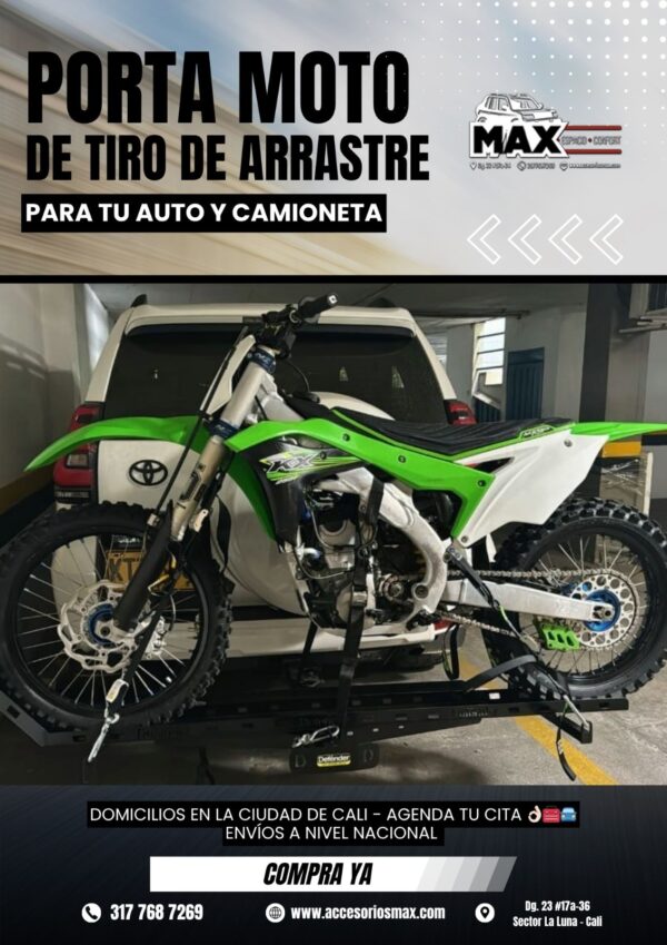 Accesorio para tiro de arrastre que permite cargar motos de 2 llantas con facilidad y seguridad. Máxima capacidad de carga : 120 kg